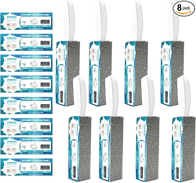 8 Pack Toilet Pumice Stone with Handle, Pumice Stone for Toilet Cleaning, Toilet Stone for Household Cleaning, with 8 Pack Label Manuals